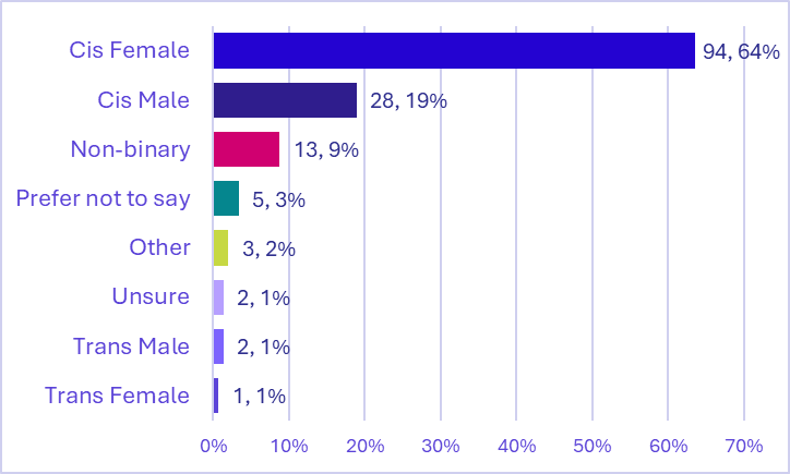 Note: ‘cis’ refers to current gender matching sex at birth and ‘trans’ refers to current gender different to sex at birth. Non-binary is counted separately.